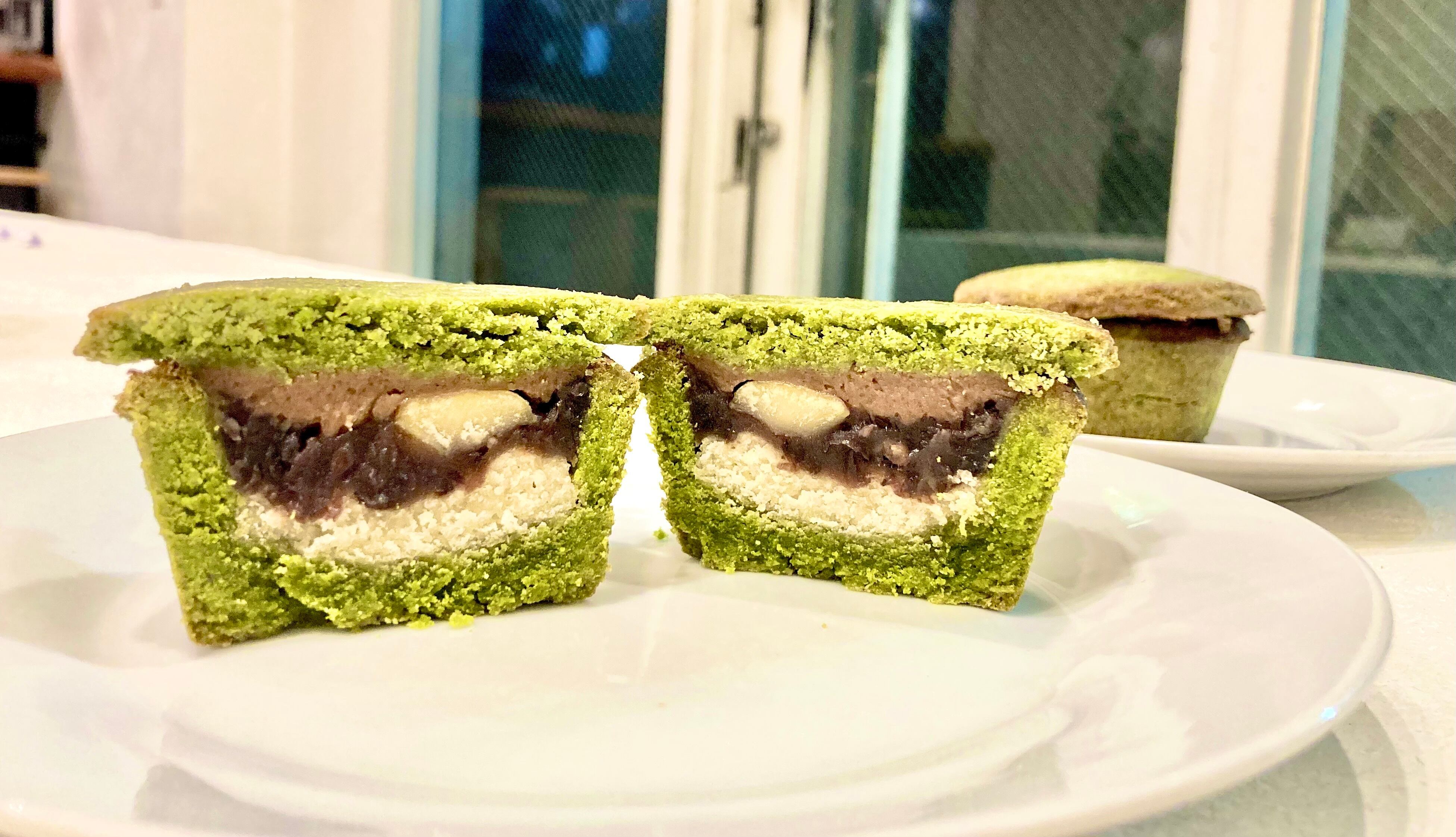 抹茶のサクサクタルト生地の中に